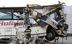 On October 23rd, 2016 in Palm Springs, California, a tour bus and a semi-truck crashed on the Interstate 10 Highway.