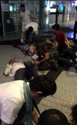 A terrorist attack, consisting of shootings and suicide bombings, occurred on 28 June 2016 at Atatürk Airport in Istanbul, Turkey. Gunmen armed with automatic weapons and explosive belts staged a simultaneous attack at the international terminal of Terminal 2. Forty-five people were killed, [undefined] in addition to the three attackers, and more than 230 people were injured. [undefined] Monitoring group Turkey Blocks identified widespread internet restrictions affecting the entire country in the aftermath of the attack. [undefined] [undefined]