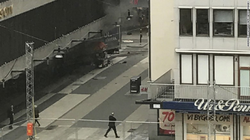 Photos on social media showed the truck crashed into the corner of the Åhléns upmarket shopping centre with its cab on fire. Witnesses reported people screaming and fleeing from the scene. There were also reports of gunfire, but these have not been confirmed. Hundreds of people were seen in video footage fleeing the street. [2]