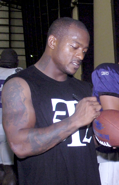 Jonathan Ogden at the 2006 Pro Bowl. Ogden played offensive tackle for the Ravens from 1996 through 2007 and was elected to the Pro Football Hall of Fame in 2013.