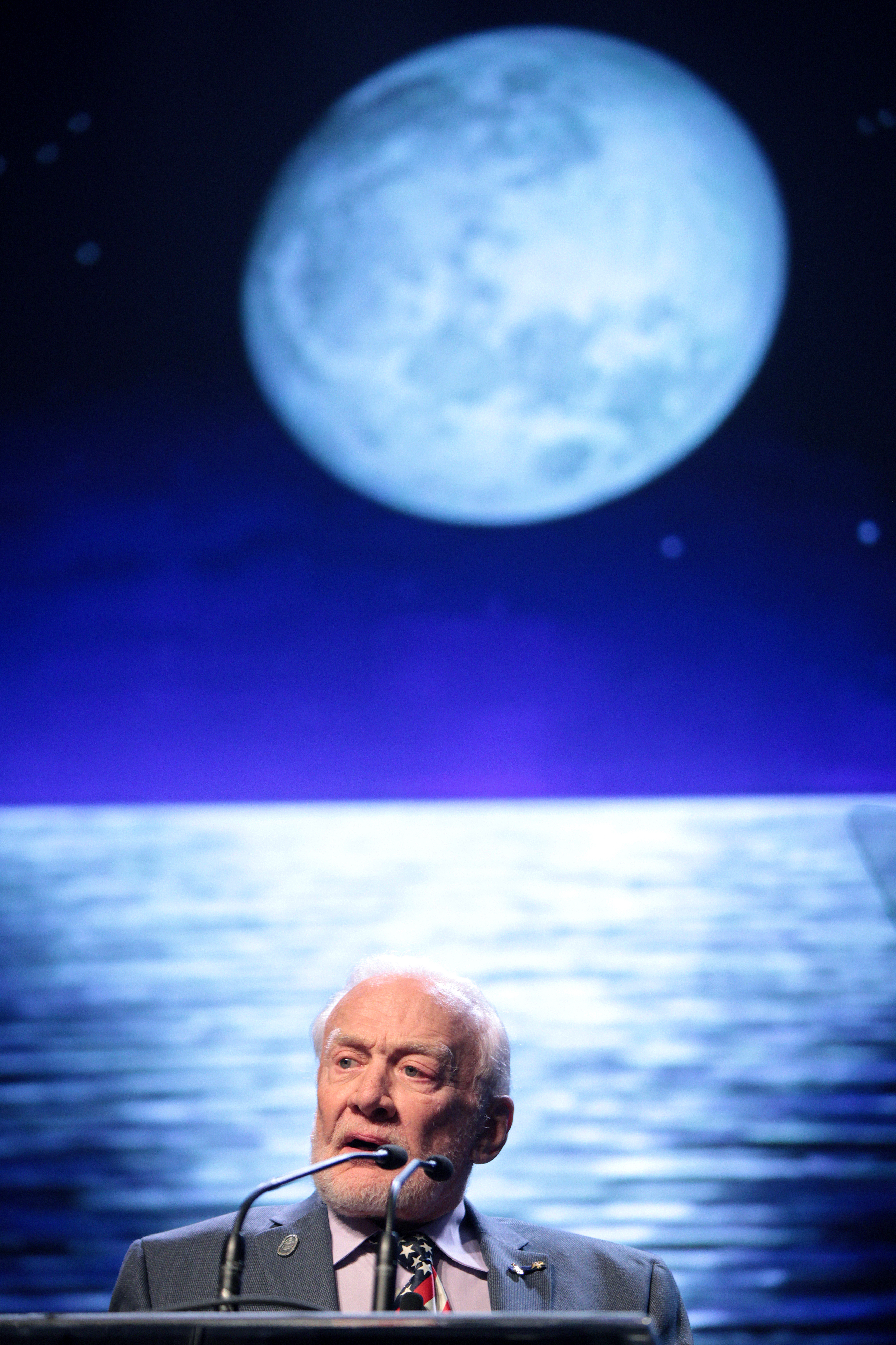 Buzz Aldrin (born Edwin Eugene Aldrin, Jr., January 20, 1930) is an American engineer and former astronaut. As the Lunar Module Pilot on Apollo 11, he was one of the first two humans to land on the Moon, and the second person to walk on it. He set foot on the Moon at 03:15:16 on July 21, 1969 (UTC), following mission commander Neil Armstrong. He is a former U.S. Air Force officer with the Command Pilot rating.