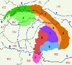 The divisions of the Carpathians are usually in three major sections: