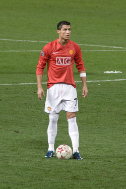 Ronaldo taking a direct free kick against Celtic in the 2008–09 UEFA Champions League