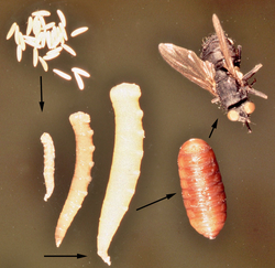 Diptera go through a complete metamorphosis with four distinct life stages - egg, larva, pupa and adult.