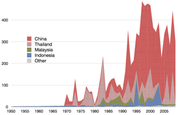 Global harvest of jellyfish in thousands of tonnes as reported by the FAO