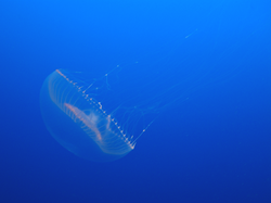 Medusae are carnivorous, feeding on plankton, crustaceans, fish eggs, small fish and other jellyfish, ingesting and voiding through the same hole in the middle of the bell.