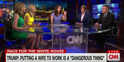 As it is her job as a television personality in the realm of the turgid conservative agenda, she has defended the rhetoric of the Donald Trump presidential campaign and is a big supporter of his reactionary politics. She believes that empowers women through his influence. She was one of the conservative pundits that defended Melania Trump's speech by stating that she does not believe that Melania intended to plagiarize.