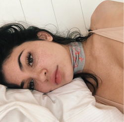 Jenner released a three minute-long promotional video for a series of lip glosses in March 2016, directed by Colin Tilley and starring fellow models Karin Jinsui, Mara Teigen, and Jasmine Sanders. [undefined] [undefined] [undefined] [undefined] [undefined] The song in the video was revealed to be "Three Strikes" by Terror Jr, a band created on the same day as the release of the video; however, the lead singer, whose true identity remains unknown and who goes by the alias "Lisa", [undefined] was heavily speculated to be Jenner herself. [undefined] [undefined] [undefined] [undefined] However, Jenner subsequently denied any involvement with the band. [undefined] [undefined] In May 2016, she made her musical debut rapping on producer Burberry Perry's song "Beautiful Day", with Lil Yachty, model Jordyn Woods, and Justine Skye. [undefined] [undefined] A man named Marvin Magallanes made multiple attempts to crash his car through the gates of the gated community where Jenner was living in June 2016. [undefined] [undefined] Magallanes subsequently confessed to the murder of a homeless man in Anaheim in May 2017. [undefined] [undefined] In fall of 2016, Jenner was announced to be the new face of PUMA along with Rae Sremmurd. [undefined] In April 2017, she made a surprise appearance at the Rio Americano High School prom in Sacramento alongside junior Albert Ochoa after hearing that his date had turned him down. [undefined] [undefined] [undefined]