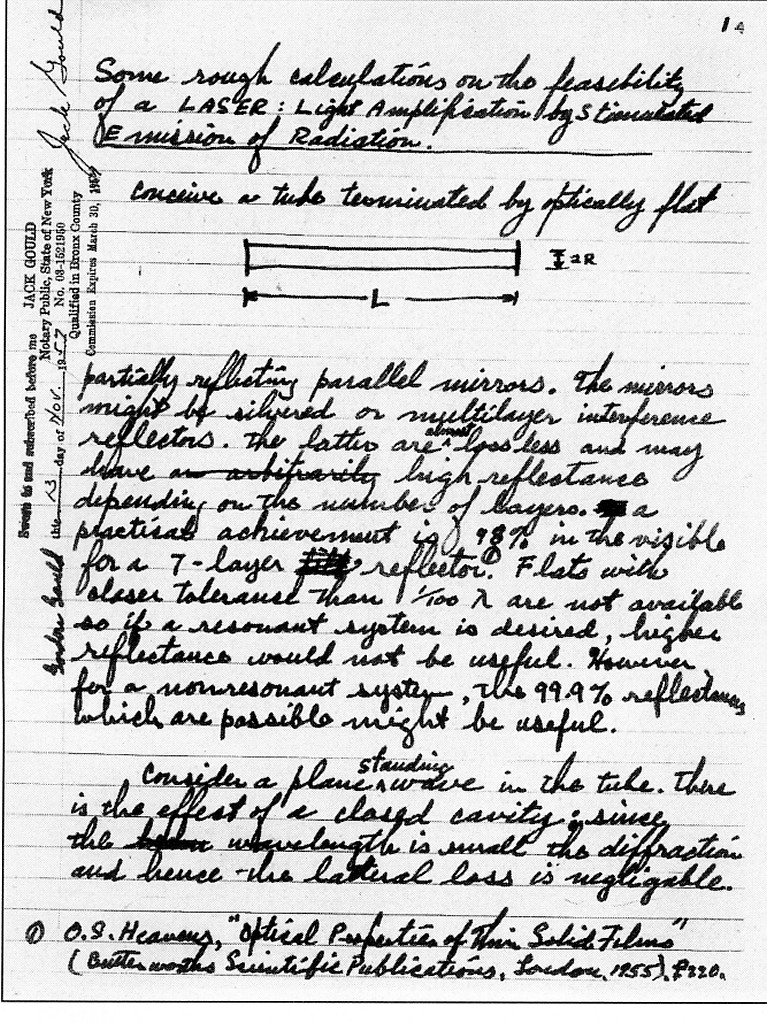 Theodore Maiman characterized the first laser as having a power of one "Gillette" as it could burn through one Gillette razor blade.