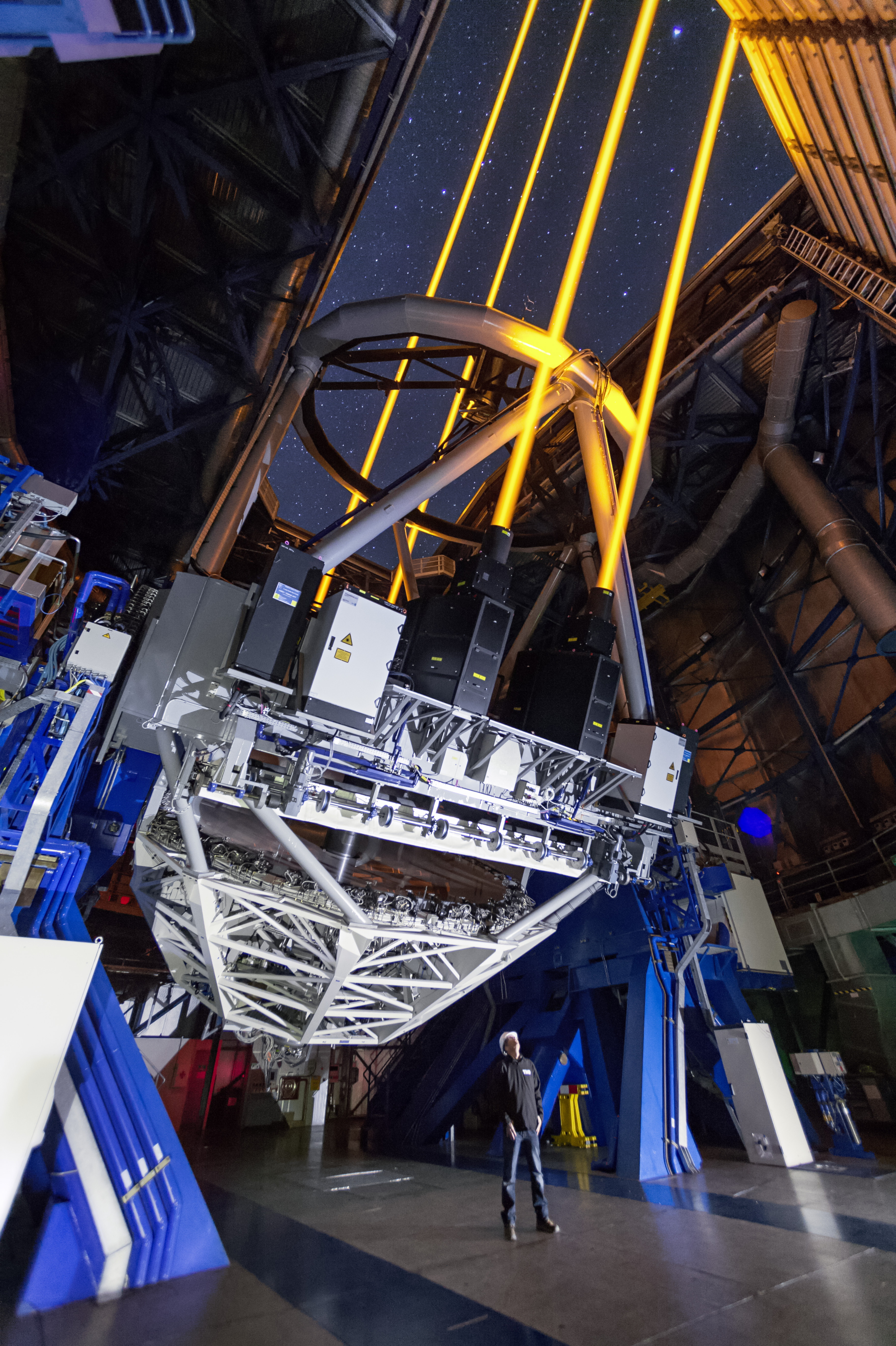 Modern telescopes use laser technologies to compensate for the blurring effect of the Earth's atmosphere.