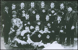 Traditional away kit colours have been either maroon or (from the 1960s) red and black; however, in recent years several different colours have been used. The origins of the club's home colours are unclear, but there is evidence that the club has worn blue since 1892 or earlier. A booklet entitled Famous Football Clubs – Manchester City published in the 1940s indicates that West Gorton (St. Marks) originally played in scarlet and black, and reports dating from 1884 describe the team wearing black jerseys bearing a white cross, showing the club's origins as a church side. [undefined] The red and black away colours used infrequently yet recurrently come from former assistant manager Malcolm Allison, who believed that adopting the colours of A.C. Milan would inspire City to glory. [undefined] Allison's theory worked, with City winning the 1969 FA Cup Final, 1970 League Cup Final and the 1970 European Cup Winners' Cup Final in red and black stripes as opposed to the club's home kit of sky blue.