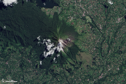 [33] The summit crater of the volcano has a complex, longer form due to vents migrating on the N-S line.