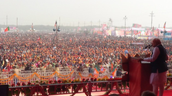 The BJP under Modi was able to downplay concerns about the protection of religious minorities and Modi's commitment to secularism, areas in which he had previously received criticism. Prior to the election Modi's image in the media had centered around his role in the 2002 Gujarat riots, but during the campaign the BJP was able to shift this to a focus on Modi's neoliberal ideology and the Gujarat model of development. [-1] Although the BJP avoided issues of Hindu nationalism to an extent, Hindutva remained a significant part of its campaign. [-1] The BJP's campaign was assisted by its wide influence in the media. [-1] Modi's campaign blitz cost approximately ₹50 billion (US$780 million), and received extensive financial support from corporate donors. [-1] In addition to more conventional campaign methods, Modi made extensive use of social media, [-1] and addressed more than 1000 rallies via hologram appearances.