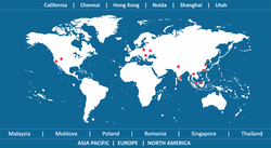 [1] The India centers are in Noida and Chennai. The Noida center also serves as the headquarters of the company. There are two technical support/ near shore development centers in the United States, at El Dorado Hills, California & Salt Lake City, Utah in USA. There are 2 European centers, in Romania and Poland. The firm also has a development center in Singapore and sales presence in the UK and Japan. [1]