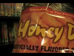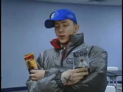 The various flavors are packaged with a cartoon version of a rapper on the front and a brief biography of the artist on the back.