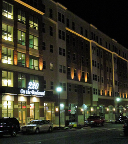 Rowan Boulevard Apartments opened in September 2009 and is made up of four buildings housing 884 students located along the south side of Route 322 and Main Street.