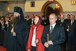 Vladimir Putin and his wife attending a commemoration service for the victims of the September 11 attacks on November 16, 2001