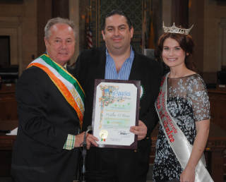 O'Brien receiving a certificate from the Mayor of Kilkenny