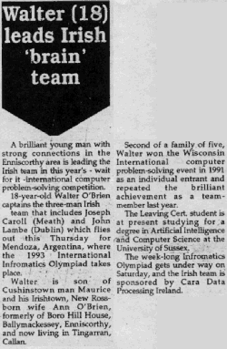 1991-1993 At 16, O'Brien ranked first in national high-speed computer problem solving competitions.