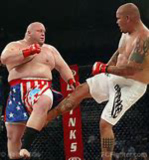 He ventured into the world of kickboxing when he was recruited by K-1 to fight in the K-1 World Grand Prix 2005 in Hawaii on July 29, 2005. Paired with fellow MMA slugger and eventual tournament champion Gary Goodridge in the quarter-finals, Correira went out as is typical of MMA fighters trying their hand at kickboxing; he was chopped down with low kicks in round one. [5] [6] Returning to MMA, he took three straight wins by first round stoppage [7] [8] before falling to Eric "Butterbean" Esch via TKO due to a broken arm at Rumble on the Rock 8 in Honolulu on January 20, 2006 in a fight which took place under special rules, ground fighting being limited to fifteen seconds per instance regardless of the situation. [9] This triggered a run of defeats as Cabbage was submitted with a Kimura by Kazuhiro Hamanaka at Rumble on the Rock 9 on April 21, 2006 and then stopped via cut by debuting professional wrestler Mike Polchlopek at Rumble on the Rock: Beatdown 1 on June 17, 2006. [10]