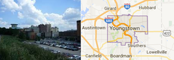 Located in the Cleveland tri-state area, [63] Youngstown is in the Mahoning Valley on the Glaciated Allegheny Plateau.
