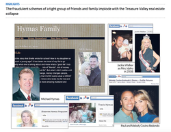 Aaron Hymas and his wife Tiffany were sentenced in United States District Court in Boise for wire fraud, United States Attorney Wendy J. Olson announced. U.S. District Judge Edward Lodge sentenced Aaron Hymas to 24 months in prison followed by three years of supervised release and ordered him to pay $1,520,296.77 in restitution. Tiffany Hymas was sentenced to 60 days in prison followed by three years of supervised release, beginning with six months of home detention. She was also ordered to pay $667,505.42 in restitution. The two former Treasure Valley residents each pleaded guilty to one count of wire fraud on October 18, 2012.