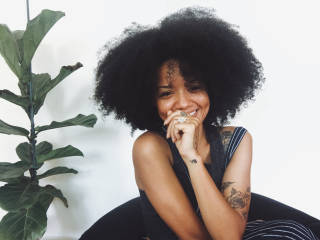 She carries a dreadlock as her hairstyle and she has a few tattoos the most noticeable one is the rose ink on her arm.