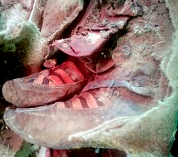 The shoes still worn on the mummy resembled the brand of Adidas footwear.