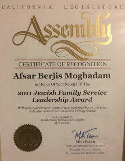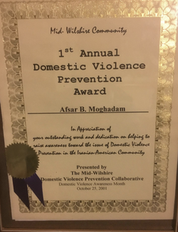 Moghadam received numerous awards for community advocacy and Domestic violence prevention, including a 2011 ceremony with Mayor Eric Garcetti.
