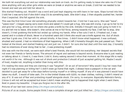 She comes at me in The Reddit confession post. full force, aiming towards my face,' the Reddit post states. I tell her to stop. She doesn't, I tried grabbing the knife but ended up cutting my hands. After a few cuts I lost it. I freaked out, I was scared and in a state of shock. Never in a hundred years did I think she would use a knife against me. Out of shock and fear I grab one. I hit her with it, almost blindly. A few times. I didn't know what happened. I was confused, shocked and scared." [undefined]