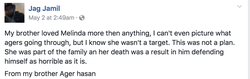 According to Ager's brother, Jag Jamil, posted on Facebook that his brother really loved his ex-girlfriend, Melinda. She met everyone in the family and would often be present at the numerous meetings they had. [undefined]