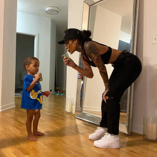 Aggy Abby pictured on her Instagram with her son