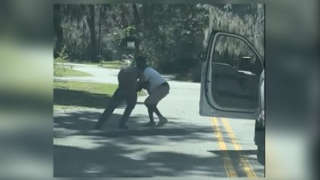 Arbery seems to toss punches and attempted to snatch the shotgun.