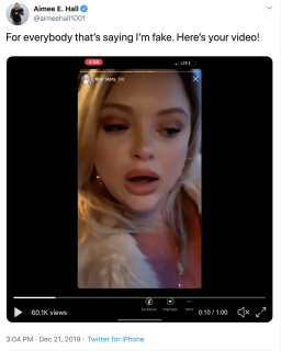 On Instagram Aimee Hall can be seen around the United States in locations like New Jersey, Alabama and Florida alongside friends and family. She goes by the handle @aimeeelizabethhall and has over 383,000 followers as of December 2019. On the platform she also promotes the popular clothing brand Fashion Nova Curve.[35]