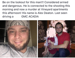 Due to the physical description, the description of the white SUV missing from the deceased victim, the proximity of the two incidents, and physical evidence collected at the Castlewood’s Boulevard shooting, Deaton is sought as the primary suspect and warrants are being issued for him.