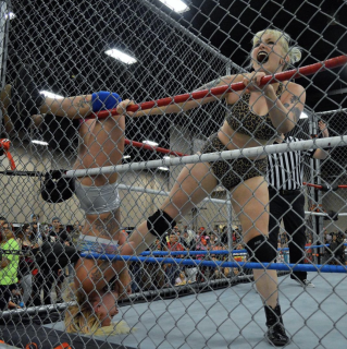 Her first match was a three way steel cage match against Delilah Doom and Laynie Luck at Alamo City Comic Con in December of 2015.[29]