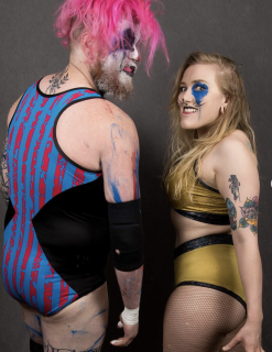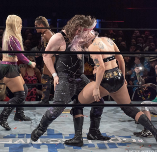 Allie Kat has participated in intergender wrestling matches, cage matches, and tag team events. She is formerly one half of the tag team duo The Blondetourage alongside Laynie Luck. She is also one half of the Punk Rock Pussycats tag team with Jody Threat and a member of Pow Meow with Christi Jaynes.[30][31]
