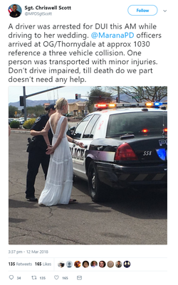 Sgt. Chriswell Scott of the Marana Police Department had tweeted a picture of Amber Young’s arrest.
