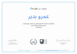 Amr Bedir received a certificate in the basics of Digital marketing from Google on April 8, 2020.[3]