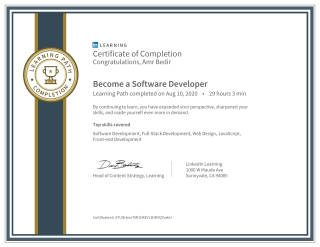 "Amr Bedir" has received many awards and certificates from major platforms specialized in the field of Programming and Development, including:
