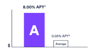 8.00% Annual percentage yield (APY)¹ High Yield Interest account. That's 160x what the national average savings bank account offers.