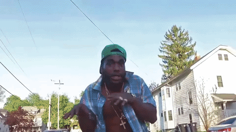 Gif of Andre where he tries to leave walk out of the house and realizes he's been caught.