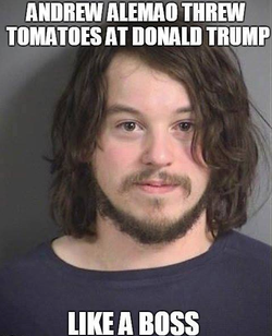 Citation Linkyoutube.comVideo of many protestors at the rally including Andrew Joseph Alemao throwing tomatoes at Donald Trump.