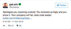 Citation Linkywqaugeunhowzrcj.public.blob.vercel-storage.comA political tweet by Torba accusing an individual of being a cuckold.