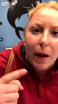 While leaving, she threatens to press harassment and stalking charges on the man filming.