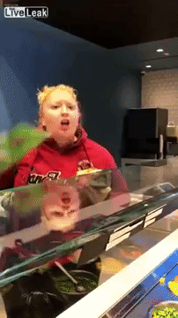 ANNA STORELLI: Lady, you're making out while we're trying to order. MAN: Step back. ANNA STORELLI: Excuse me? MAN: Step the fuck back! ANNA STORELLI: Why don't-- excu-- don't tell me--MAN: Step the fuck back! Step the fuck back. ANNA STORELLI: Excuse me? Excuse me? Why don't you step the fuck back? MAN: (to the cashier) Can you call the cops? Can you call the cops? ANNA STORELLI: Can you call the cops on him? MAN: I'm getting all of this on video. So we'll see who's harassing who later. ANNA STORELLI: You're fucking your girlfriend in a public restaurant acting like a prostitute! You need to leave! You told me to leave while in my order while you're making out with that slut. MAN: Okay. ANNA STORELLI: Okay? MAN: Yeah. ANNA STORELLI: You're such an airhead. You're so dumb. You're sexually harassing me. You and that slut. MAN: Boy, you are harboring a lot of shit, and you're just letting it all out. ANNA STORELLI: You know what? I don't want to watch you make out with that person while I'm trying to order food. MAN: Good. There's the door right there. Go ahead. LADY: You already ordered your food--MAN: Yep.