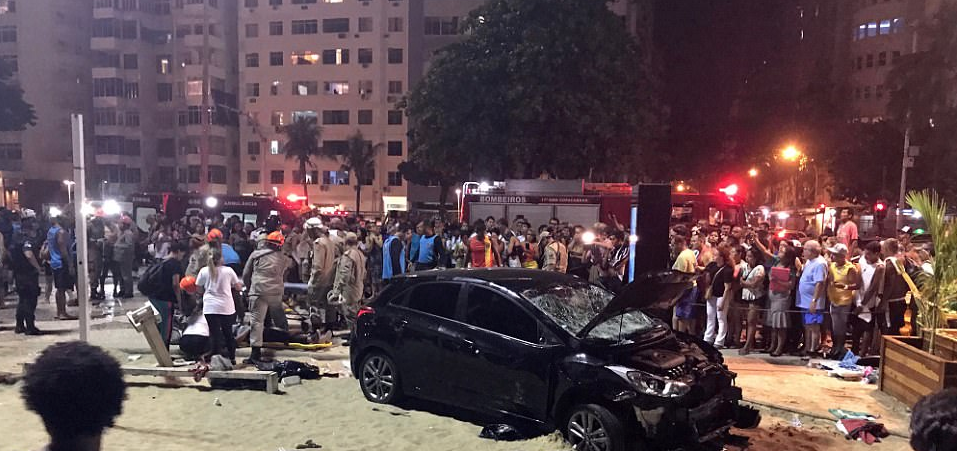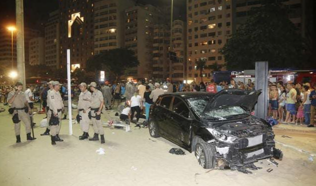 Anaquim tropelou diversas pessoas na noite desta quinta-feira, na orla de Copacabana, Zona Sul do Rio. carro de Antônio vinha pela Avenida Atlântica quando atravessou a ciclovia e o calçadão e só parou na areia. O acidente aconteceu na altura da Rua Figueiredo de Magalhães. [1]