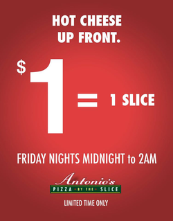 Antonio's Pizza opened its first shop in 1991 in Amherst, MA, and has been a fixture in the community ever since. Both students and full-time residents alike indulge in Antonio's wide selection of slices. Since 2002, they have been expanding outside of its Massachusetts origins and is now located in 8 cities in 4 states. [1]