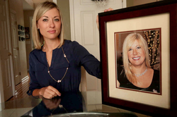 Photo of April Kauffman's daughter, Kim Pack, holding a frame of her mother.
