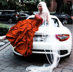 Photo of Ariane Bellamar posing for a photo on top of her Maserati.